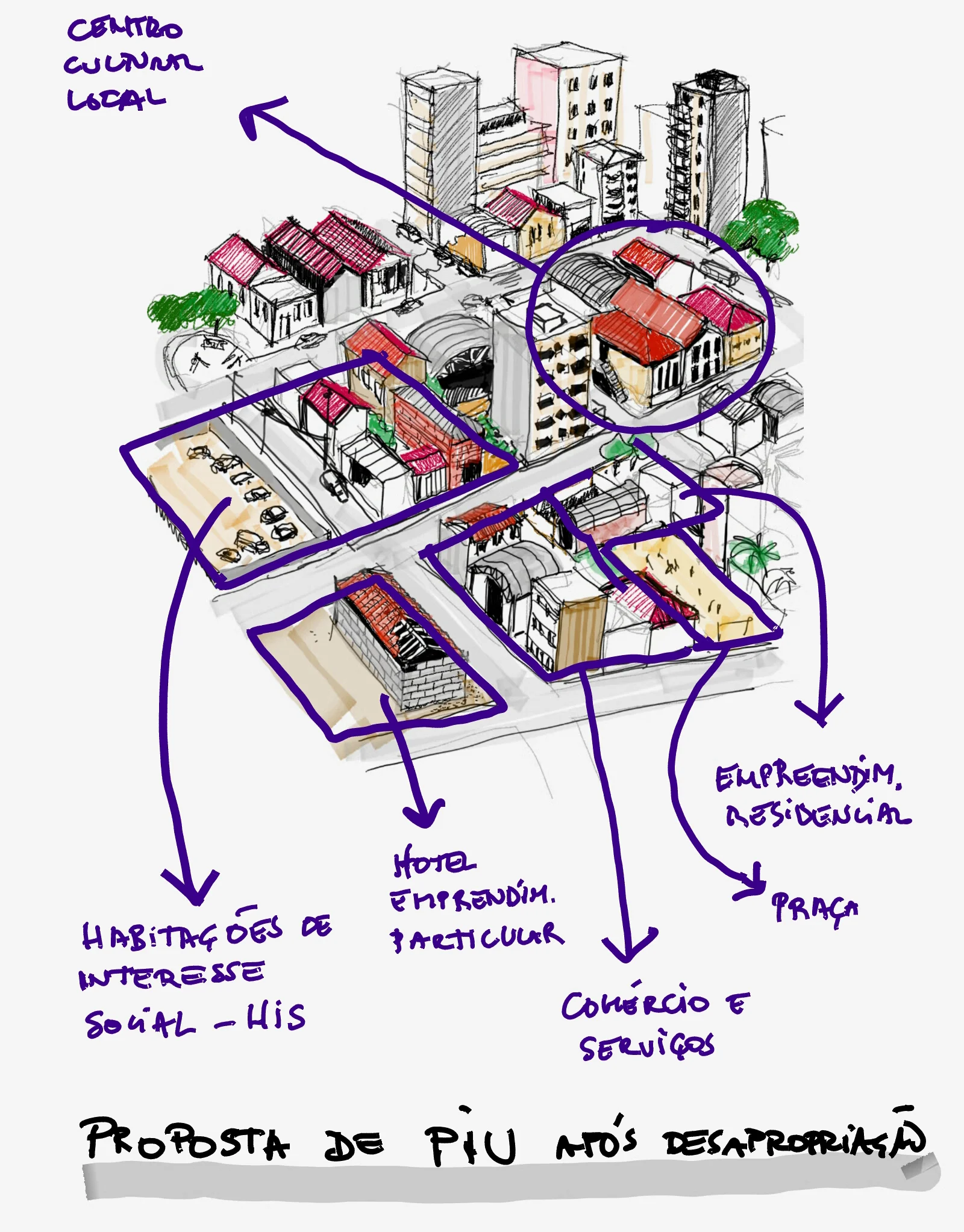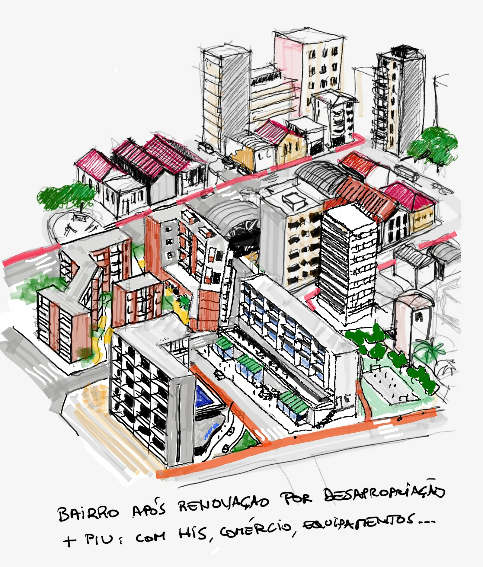 É claro que em uma área dessas, nem tudo seria destinado à provisão de habitação social, sem o que não se chegaria à diversidade social tão necessária à criação da vitalidade urbana (um princípio hoje peremptório nas intervenções urbanísticas europeias já citadas). Deve-se prever a criação de comércio, edifícios de serviços, empreendimentos habitacionais de renda média e alta, etc. E, para isso, novamente a associação do estabelecido na MP 700 com as diretrizes do PIU tornam-se um instrumento extremamente inovador.